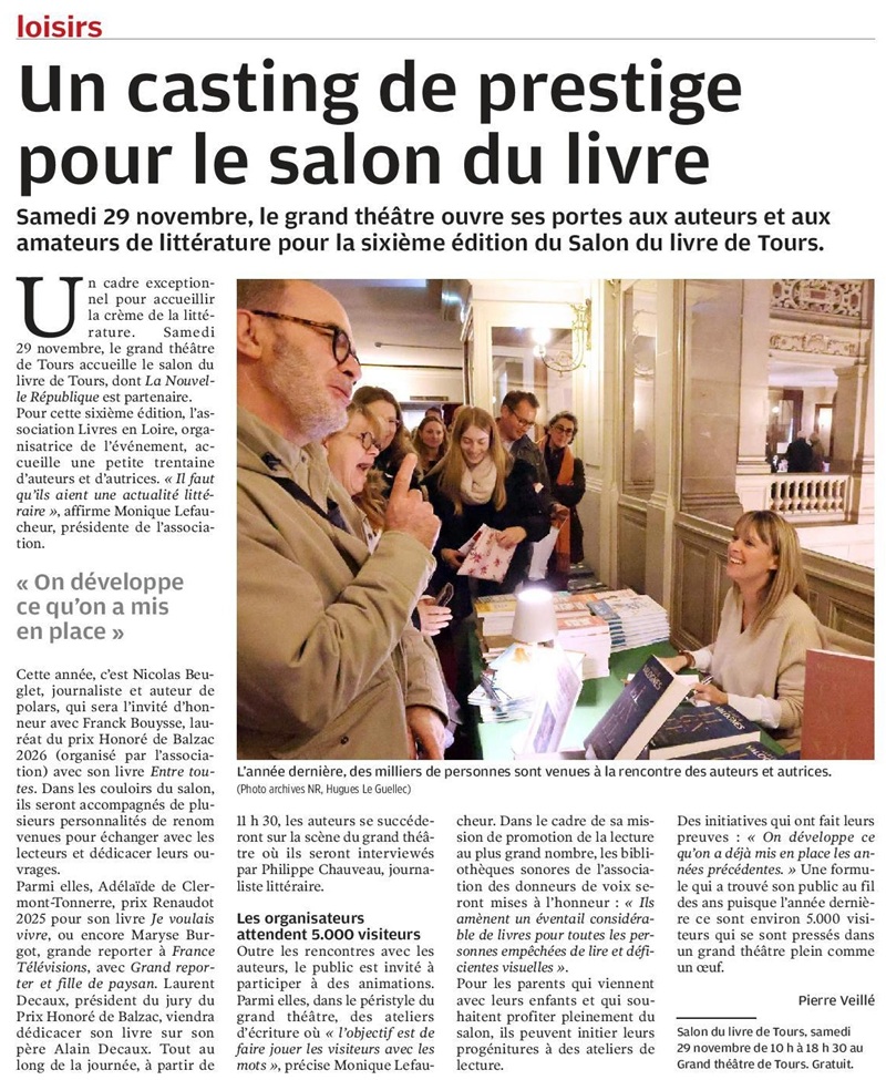 Article de La Nouvelle République sur la préparation du Salon du Livre de Tours