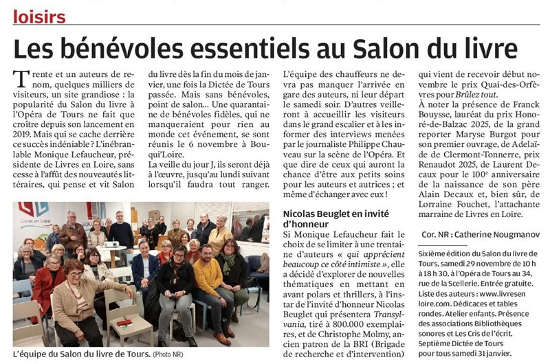 Article de La Nouvelle République sur la préparation du Salon du Livre de Tours